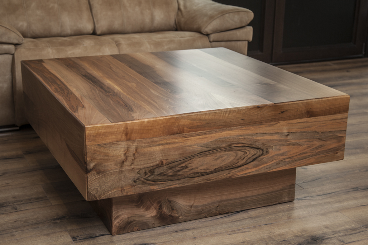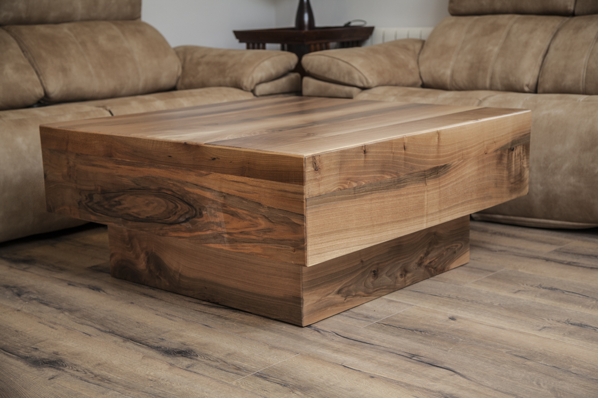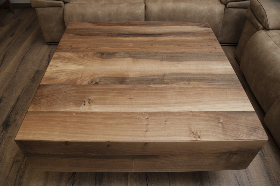 Mesa cuadrada, realizada en nogal blanco español con acabado al natural, resaltando así las vetas más fuertes. Con un diseño en líneas rectas. Disponible en todo tipo de medidas. Disponible en Nogal, Tulipier, Mansonia, Haya, Roble, Fresno y Cerejeira.